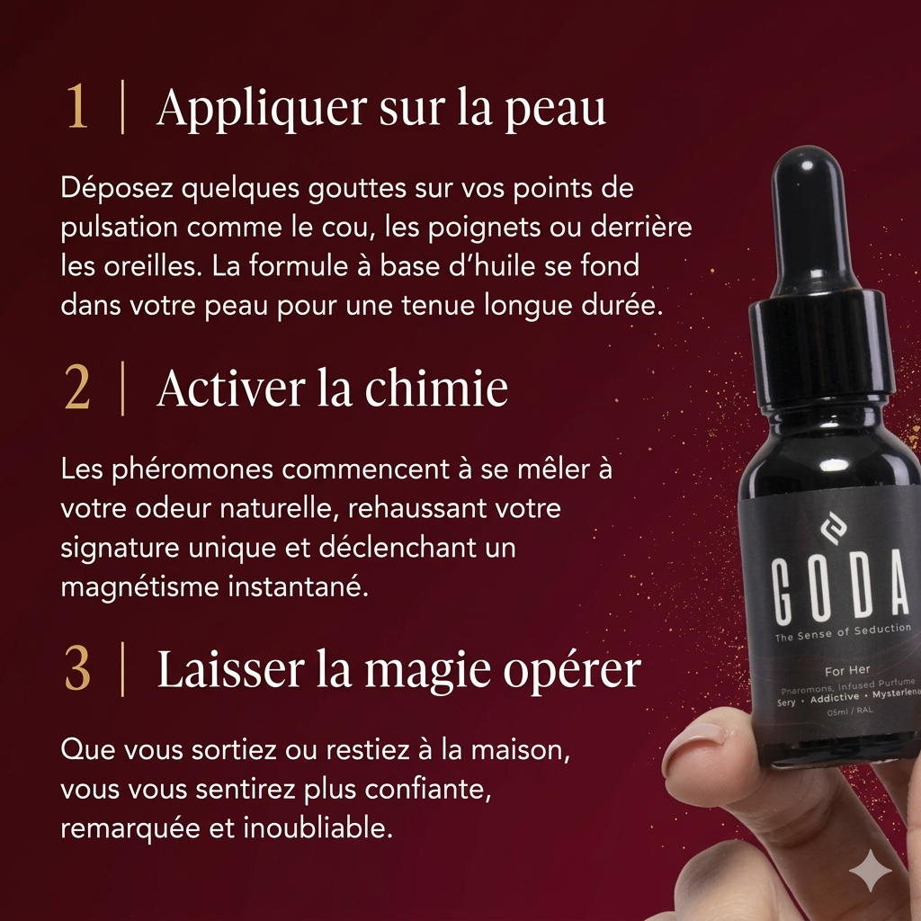 "Oh mon Dieu, par où commencer ? Ce parfum est à tomber ! Je suis une véritable passionnée de parfums — j'ai absolument tout ce que vous pouvez imaginer, y compris les plus grandes marques et les labels les plus prestigieux — et je peux affirmer en toute honnêteté que Goda les surpasse tous. J'en suis totalement obsédée ! Je l'adore, je l'adore, je l'adore... Il faut absolument que vous l'essayiez !"